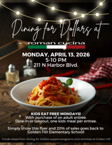 Golden Hill Elementary School of the Creative and Performing Arts is supported by many volunteers who help make the school year FUN with various events and programming for students and their families. The events listed below are a product of the teamwork between the PTA and Golden Hill Elementary School Foundation (GHEF). More specific information about each event will become available as the date nears. We encourage parent participation to make all of our events a success for our students.